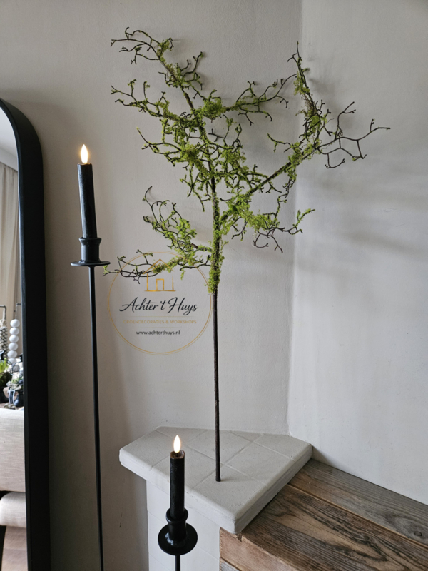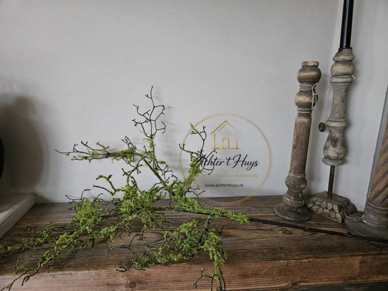 Prachtige kunst mos tak van maar liefst 90 cm lang. Mooi in een kruik in een houten schaal of om een krans mee te draaien.