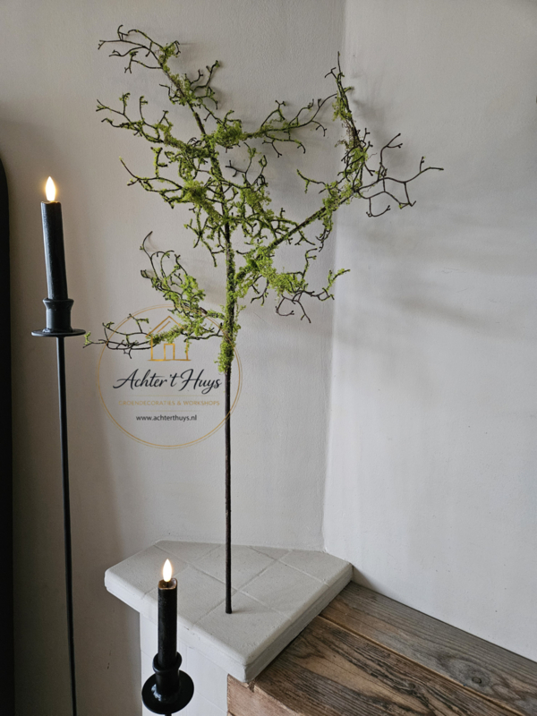 Kunst mos tak 90 cmPrachtige kunst mos tak van maar liefst 90 cm lang. Mooi in een kruik in een houten schaal of om een krans mee te draaien.
